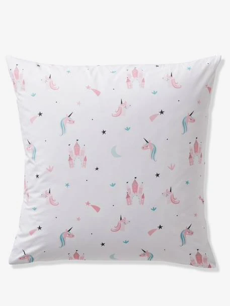 - Motifs licornes sur le devant de la housse de couette et imprimés petites licornes et étoiles sur la taie d’oreiller et le dos de la housse de couette.